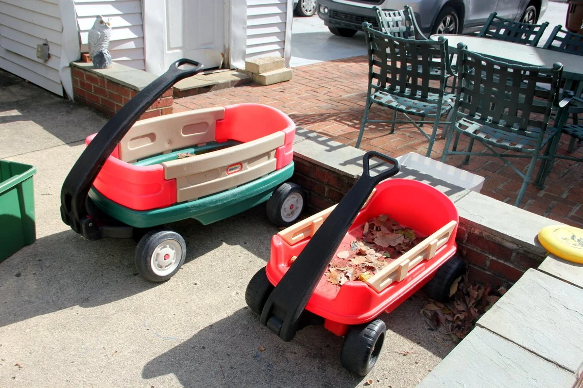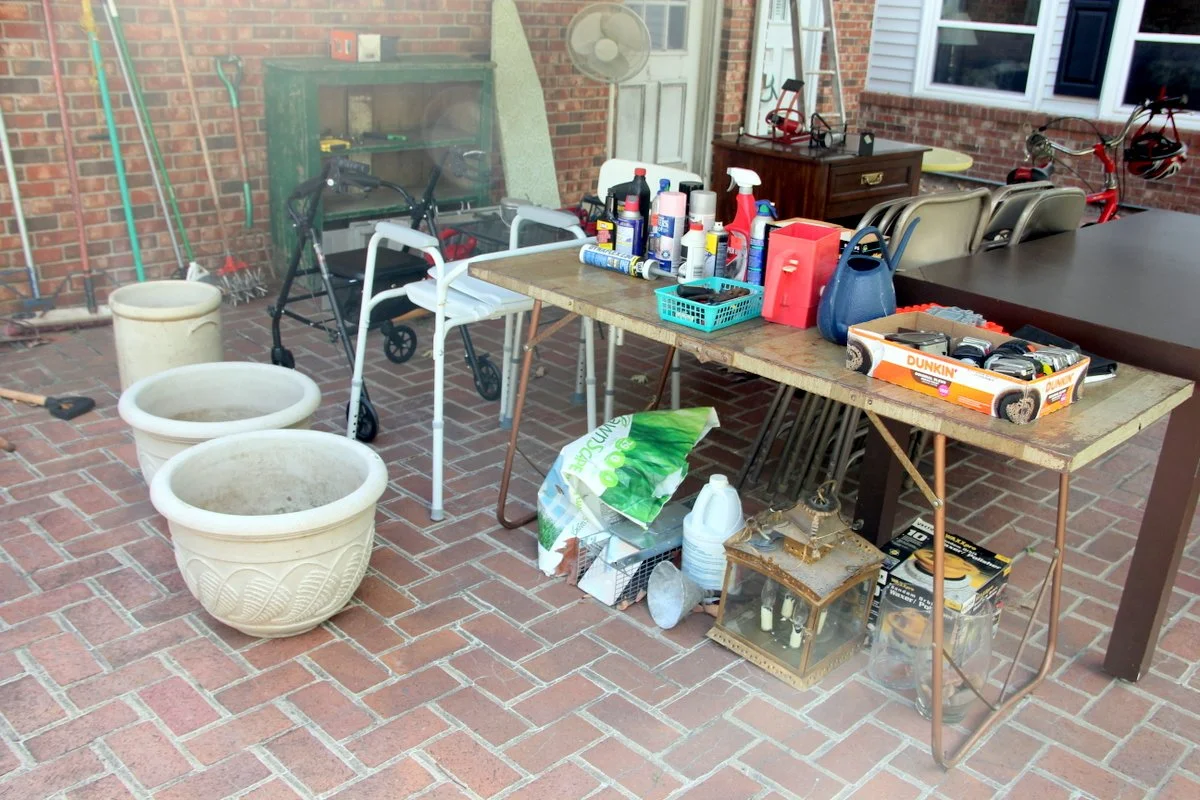 Garage / Outdoor: GE Garage Refrigerator, Raleigh “The Pointe” Bike, NEW Schwinn Madeline Bike, Bike Helmets, Bike Rack, Schwinn Airdyne Stationary Bike, Little Tykes Wagons, New Quench Hoses, Leaf Blowers, Hedge Trimmers, Extension Cords, Outdoor Table & 6 Chairs, Golf Clubs, Garden Tools, Wooden Extension Ladder, Step Ladders, American Flags