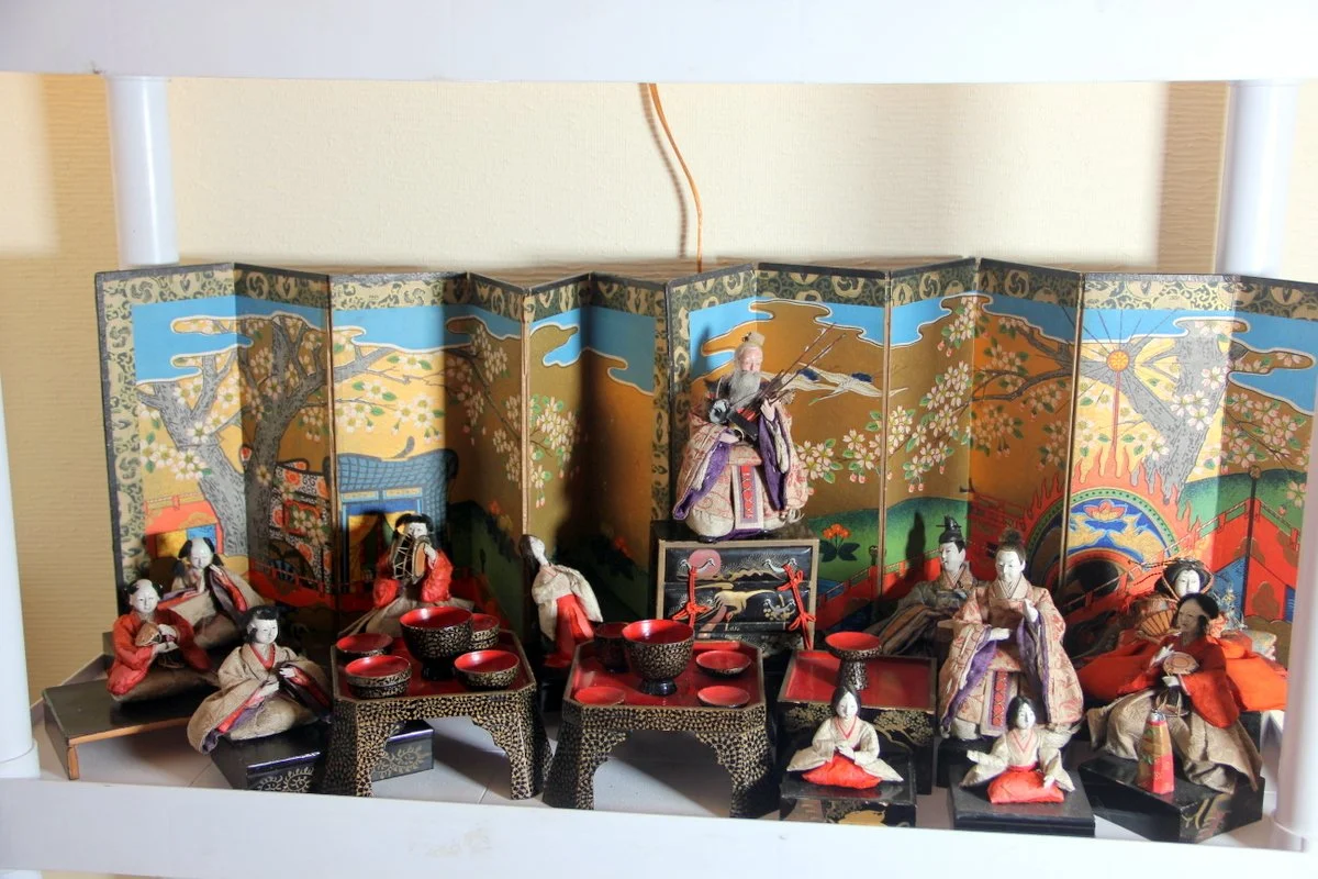 Large Japanese Hina Doll Collection with Hina Wall Panels