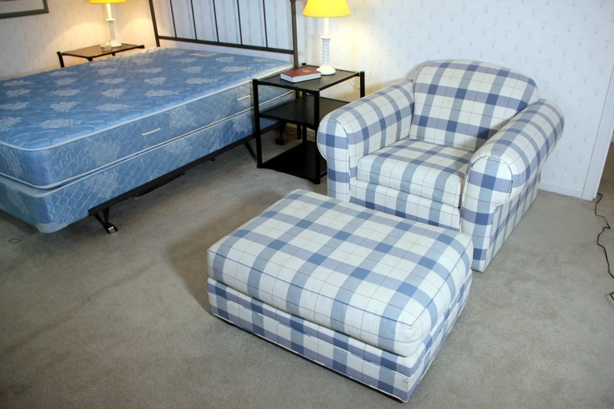 Pair of Ethan Allen Chairs, Ethan Allen Corner Desk / Bookcase in Background